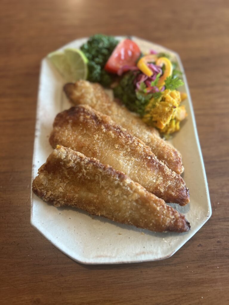 自家製味噌だれに漬けこんだサバをフライ